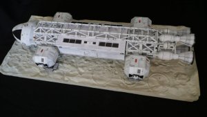 after a summer break its now time to present my latest model the Eagle Transporter from the tv series space 1999. The frame of the model is made of more than 300 paper-pipes. These parts were not that much easy, but the most difficult parts are the pod an the small thrusters at the legs. For the pod I used a lot of cardstock and the little thrusters are only buildable with a magnifying glass and a tweezer. Here are some pics of the model with the first part of my projected diorama.