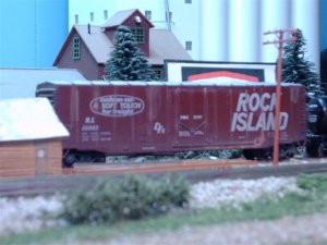 No idea where I got this one, or who weathered it. The box itself was sitting in the scrap box, as were the rest of the parts (I doubt it's all from the same kit). Decided to put all the parts together to build a boxcar, and added kadee 5s. As you can see, it still needs some work, but I like it so far!