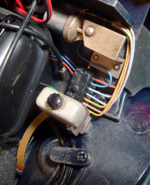 Going to the front lid: the turn indicator device (left) the fuse box provided by Hachette (center) and my version (right). The cables are painted according to original FIAT electric schemes...